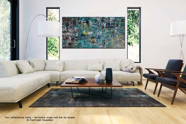 Stretched ~ mounted on 1.5″ deep wooden bars. This painting is ready-to-hang! No frame needed. Sides are painted and all hardware is included. Ships in a box. International buyers, please check the "shipping" tab.